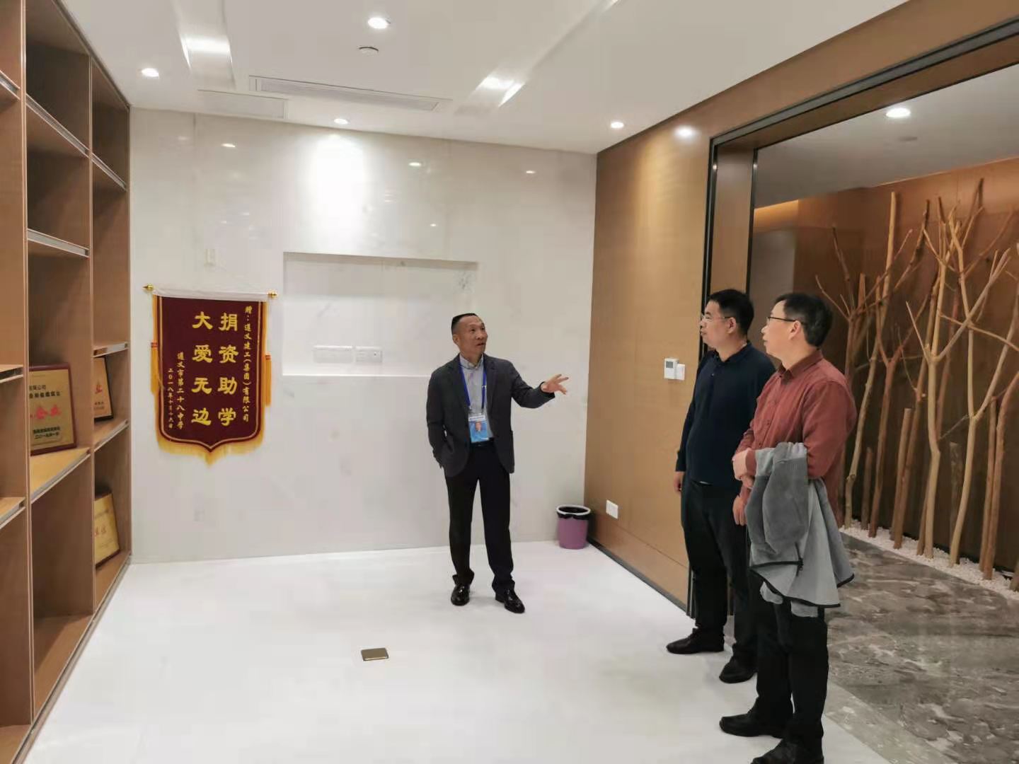 覃總一行首先參觀了企業(yè)展廳,對遵義建工在各個領(lǐng)域所取得的榮譽表示稱贊。